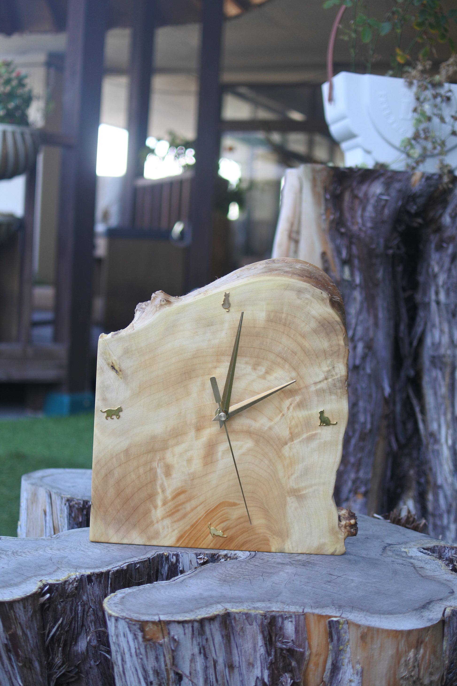 「3時を待つねこ」は、猫好きさんの暮らしに寄り添う特別な一枚板時計を制作しました。