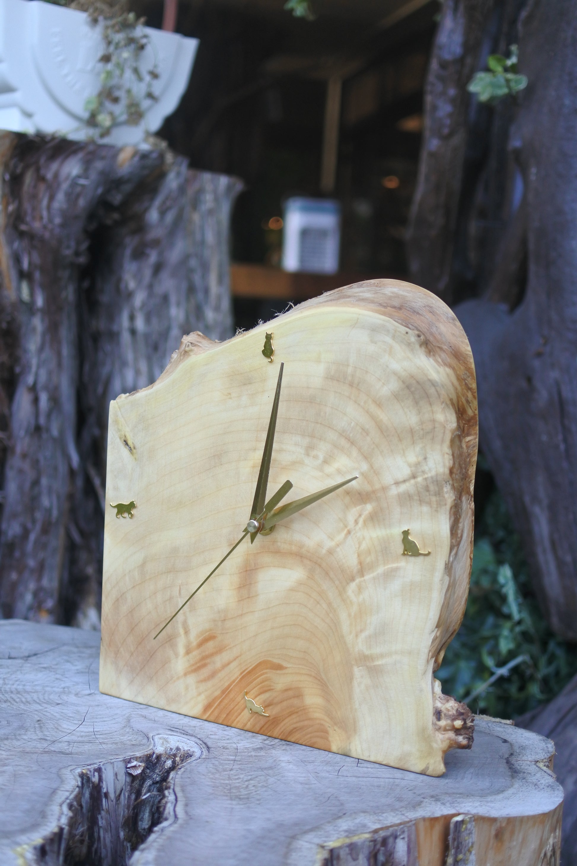 イチョウ 一枚板時計|3時を待つねこ